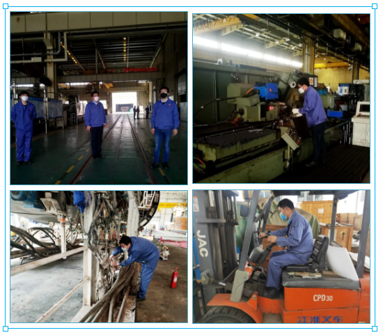 “防疫物資到位、人員排查到位、復(fù)工手續(xù)齊全。疫情防控關(guān)口已下沉到班組,生產(chǎn)正常推進(jìn)?!?/p> 經(jīng)過緊張有序的前期準(zhǔn)備工作,地處湖北武漢的中國兵器工業(yè)集團(tuán)武重集團(tuán)正式進(jìn)入復(fù)工復(fù)產(chǎn)狀態(tài)。 3月19日上午8時(shí),首批復(fù)工人員準(zhǔn)時(shí)抵達(dá)公司,戴著口罩,在接受體溫檢測、手部消毒后,進(jìn)入廠區(qū)。 提前謀劃 打好“雙戰(zhàn)役” 3月13日以來,武重集團(tuán)先后召開公司黨委會(huì)議、董事長辦公會(huì),傳達(dá)學(xué)習(xí)習(xí)近平總書記考察湖北新冠肺炎疫情防控工作時(shí)的重要講話精神,樹信心、鼓干勁、戰(zhàn)疫情、促發(fā)展,動(dòng)員全公司上下緊盯全年各項(xiàng)目標(biāo)任務(wù),迎難而上、奮力拼搏,努力把疫情耽誤的時(shí)間“搶”回來,做到貫徹落實(shí)習(xí)近平總書記重要講話精神更加到位,統(tǒng)籌推進(jìn)疫情防控和企業(yè)發(fā)展更加有效。 為切實(shí)做好公司復(fù)工復(fù)產(chǎn)前后疫情防控,維護(hù)生產(chǎn)經(jīng)營正常運(yùn)行,按照復(fù)工有關(guān)要求,公司疫情防控領(lǐng)導(dǎo)小組組織制定了《復(fù)工復(fù)產(chǎn)防控新型冠狀病毒肺炎疫情工作方案》、《疫情防控應(yīng)急預(yù)案》以及疫情期間安全生產(chǎn)、員工管理、進(jìn)出廠區(qū)管理和通勤車、食堂、消毒等后勤保障工作細(xì)則等文件,配備了口罩、防護(hù)服、測溫槍、消毒水等防護(hù)用品及應(yīng)急物資,設(shè)置了應(yīng)急隔離區(qū),確保復(fù)工后的防疫所需。 周密部署 筑牢“防疫墻” “復(fù)工任務(wù)雖急,人員安全更重,必須把好人員進(jìn)場第一關(guān)。”在人員進(jìn)場管控上,武重集團(tuán)建立了這樣一條“硬核規(guī)定”:員工必須每天通過企業(yè)微信提交體溫信息,建立員工健康檔案,筑牢復(fù)工“防疫墻”。 在接到復(fù)工批復(fù)后,公司領(lǐng)導(dǎo)多次帶隊(duì)深入生產(chǎn)現(xiàn)場,檢查疫情防控工作和復(fù)工前的各項(xiàng)準(zhǔn)備工作,協(xié)調(diào)解決項(xiàng)目在復(fù)工過程中存在的問題,要求通過優(yōu)化產(chǎn)出計(jì)劃拉動(dòng)復(fù)工復(fù)產(chǎn)體系,使公司上下盡快進(jìn)入達(dá)產(chǎn)達(dá)效狀態(tài)。3月17日到18日,各單位按照各項(xiàng)預(yù)案措施針對安全、設(shè)備、就餐、消毒、乘車、住宿、應(yīng)急體系演練、職工隔離工作等方面進(jìn)行全面排查,全力確保疫情防控精準(zhǔn)到位、安全生產(chǎn)有序推進(jìn)。 公司領(lǐng)導(dǎo)到生產(chǎn)現(xiàn)場、職工食堂察看復(fù)工復(fù)產(chǎn)各項(xiàng)準(zhǔn)備工作 做實(shí)做細(xì) 當(dāng)好“排頭兵” 新冠肺炎疫情發(fā)生以來,武重集團(tuán)迅速投身戰(zhàn)“疫”,充分利用武重集團(tuán)“大國重器”技術(shù)及加工能力優(yōu)勢,多次為火神山醫(yī)院、雷神山醫(yī)院建設(shè)、防疫物資加工等急難險(xiǎn)重任務(wù)貢獻(xiàn)力量,展示了武重人“召之即來,來之能戰(zhàn),戰(zhàn)之必勝”的優(yōu)良作風(fēng)。 隨著復(fù)工的啟動(dòng),武重集團(tuán)生產(chǎn)指揮系統(tǒng)迅速重新編制了年度施工進(jìn)度計(jì)劃,將延誤工期時(shí)間分解到各個(gè)施工階段,保證施工節(jié)點(diǎn)任務(wù)完成,多個(gè)重大項(xiàng)目將從“暫?!蹦J角袚Q為“快進(jìn)”模式,加快復(fù)工復(fù)產(chǎn)。 進(jìn)入工作區(qū)前進(jìn)行體溫測量及消毒 復(fù)工單位開展班前會(huì) 各單位復(fù)工有序進(jìn)行 食堂用餐避免扎堆 武重集團(tuán)將以鏗鏘的步伐、昂揚(yáng)的斗志,聚焦重點(diǎn)項(xiàng)目,全力以赴做好復(fù)工復(fù)產(chǎn)各項(xiàng)工作,繼續(xù)發(fā)揮好大國重器、央企頂梁柱作用,奮力奪取疫情防控和企業(yè)發(fā)展雙勝利。(武重集團(tuán)) |