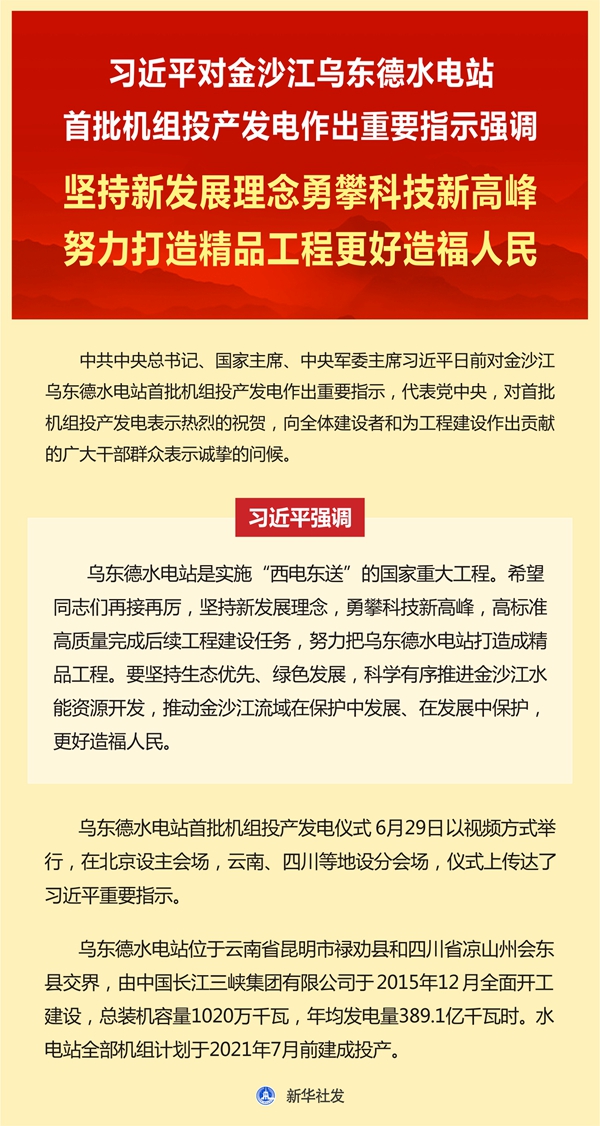 新華社:習(xí)近平對(duì)金沙江烏東德水電站首批機(jī)組投產(chǎn)發(fā)電作出重要指示強(qiáng)調(diào) |