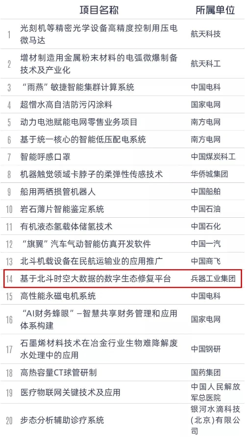 為落實黨中央、國務(wù)院關(guān)于加快實施創(chuàng)新驅(qū)動發(fā)展戰(zhàn)略、深入推進大眾創(chuàng)業(yè)萬眾創(chuàng)新的決策部署,加快推動中央企業(yè)創(chuàng)新創(chuàng)業(yè)高質(zhì)量發(fā)展,國資委于2020年9月組織開展了第三屆中央企業(yè)熠星創(chuàng)新創(chuàng)意大賽。 大賽啟動以來,各中央企業(yè)積極組織參加,社會創(chuàng)新團體踴躍參與,共3340個項目、2.3萬余人報名參賽。通過項目初選和復選,共有516個項目面向社會進行了投資路演和對接,吸引眾多投資機構(gòu)和知名企業(yè)參與,達成一批合作意向。 經(jīng)總決賽評選,共評選出一等獎20項、二等獎30項、三等獎50項、優(yōu)秀獎100項,中國兵器工業(yè)集團有限公司4個項目獲獎并榮獲“優(yōu)秀組織單位”。 兵器工業(yè)集團獲獎項目 一等獎(1個) 基于北斗時空大數(shù)據(jù)的數(shù)字生態(tài)修復平臺(創(chuàng)意類) 三等獎(1個) 三合一北斗智能邊海防管控終端(創(chuàng)新類) 優(yōu)秀獎(2個) 基于北斗的鐵路工程測量創(chuàng)新應(yīng)用(創(chuàng)意類) 公共交通一體化智慧監(jiān)測系統(tǒng)(創(chuàng)新類) 完整獲獎名單 |