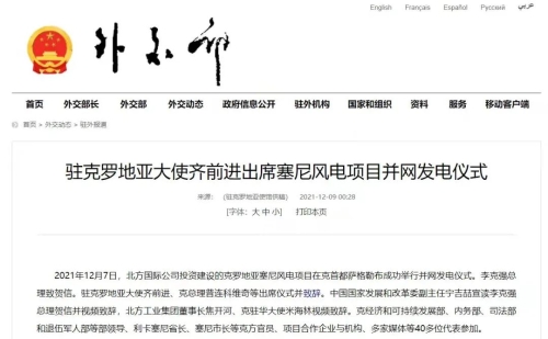 2021年12月7日,中國兵器工業(yè)集團(tuán)有限公司北方公司所屬北方國際投資、建設(shè)和運(yùn)營的塞尼156MW風(fēng)電項(xiàng)目在克羅地亞首都薩格勒布隆重舉行并網(wǎng)發(fā)電儀式。李克強(qiáng)總理致賀信??肆_地亞總理安德烈·普連科維奇,中國駐克羅地亞大使齊前進(jìn)出席儀式并致辭。中國國家發(fā)展和改革委員會副主任寧吉喆宣讀李克強(qiáng)總理賀信并視頻致辭,中國兵器工業(yè)集團(tuán)有限公司董事長焦開河、克駐華大使米海林視頻致辭。 中華人民共和國外交部報道 普連科維奇總理在致辭中表示,感謝李克強(qiáng)總理發(fā)來賀信,他與中國領(lǐng)導(dǎo)人一直非常重視塞尼風(fēng)電項(xiàng)目投資與建設(shè)。祝賀項(xiàng)目克服疫情與地震等影響,成功并網(wǎng)發(fā)電。增加清潔可再生能源、綠色電力對克乃至歐洲都很重要,克政府的重要戰(zhàn)略和目標(biāo)之一就是低碳發(fā)展和增加清潔能源供應(yīng)。塞尼風(fēng)電項(xiàng)目占克總發(fā)電量將達(dá)3.5%,對克實(shí)現(xiàn)2022年可再生能源比例30%目標(biāo)具有很大幫助。此次投資使北方國際成為在克最大的清潔能源投資企業(yè)。非常歡迎更多中國企業(yè)擴(kuò)大對克投資。 寧吉喆宣讀李克強(qiáng)總理賀信并視頻致辭時表示,2017年11月第六次中國—中東歐國家領(lǐng)導(dǎo)人會晤期間,在李克強(qiáng)總理和普連科維奇總理等中東歐16國領(lǐng)導(dǎo)人的共同見證下,塞尼項(xiàng)目簽署了協(xié)議。項(xiàng)目既是中國堅定踐行綠色發(fā)展理念的具體體現(xiàn),也是中國深化與克羅地亞、與中東歐國家務(wù)實(shí)合作的生動實(shí)踐。希望中克兩國政府部門,企業(yè)等有關(guān)各方共同努力、相互配合,運(yùn)營好塞尼項(xiàng)目,打造出中歐綠色合作的樣板,帶動兩國務(wù)實(shí)合作持續(xù)深入發(fā)展,造福兩國人民。 焦開河在致辭時表示,在塞尼項(xiàng)目投入運(yùn)營之際,李克強(qiáng)總理專門致信祝賀。作為塞尼項(xiàng)目的投資方、建設(shè)方、運(yùn)營方,我們備受鼓舞,深感自豪!未來,中國兵器工業(yè)集團(tuán)有限公司將繼續(xù)深入貫徹落實(shí)習(xí)近平總書記重要指示批示精神和李克強(qiáng)總理賀信重要要求,以高標(biāo)準(zhǔn)、可持續(xù)、惠民生為目標(biāo),與克方合作伙伴坦誠溝通、攜手并進(jìn),進(jìn)一步推動綠色能源建設(shè),努力打造更多的“一帶一路”標(biāo)志性、引領(lǐng)性、示范性項(xiàng)目,為鞏固中克戰(zhàn)略合作伙伴關(guān)系、推進(jìn)中克從經(jīng)貿(mào)領(lǐng)域到全方位合作貢獻(xiàn)積極力量。 齊前進(jìn)祝賀塞尼風(fēng)電項(xiàng)目順利完工和成功并網(wǎng)發(fā)電。他表示,塞尼風(fēng)電站項(xiàng)目并網(wǎng)發(fā)電是中克兩國領(lǐng)導(dǎo)人親自關(guān)注和推動的成果。作為迄今最大的中國在克投資合作項(xiàng)目,塞尼風(fēng)電項(xiàng)目是中克和中歐綠色合作的典范,對克提高清潔能源生產(chǎn)消費(fèi)發(fā)揮著重要作用。項(xiàng)目建設(shè)過程中為當(dāng)?shù)嘏囵B(yǎng)了許多工程、技術(shù)和管理人才,帶動了當(dāng)?shù)仄髽I(yè)發(fā)展,增加了就業(yè)和稅收,促進(jìn)了當(dāng)?shù)亟?jīng)濟(jì)社會發(fā)展,充分體現(xiàn)了中國對外經(jīng)貿(mào)合作與“一帶一路”倡議秉持的互利共贏、共同發(fā)展的理念,也是中國積極倡導(dǎo)的綠色低碳發(fā)展合作的典范。 塞尼項(xiàng)目位于克羅地亞中部亞得利亞海沿岸,建設(shè)總投資1.79億歐元,總裝機(jī)容量156MW,采用39臺4MW風(fēng)力發(fā)電機(jī)組設(shè)備,風(fēng)場面積達(dá)42.8平方公里。項(xiàng)目正式運(yùn)營后,預(yù)計每年平均發(fā)電超3000小時,貢獻(xiàn)約5.3億度綠色電力,可減少二氧化碳排放約46萬噸,將為克羅地亞促進(jìn)能源轉(zhuǎn)型、發(fā)展綠色經(jīng)濟(jì)提供強(qiáng)勁助力,貢獻(xiàn)了“中國智慧”“中國方案”。 來源/中華人民共和國外交部、綜合有關(guān)報道 |