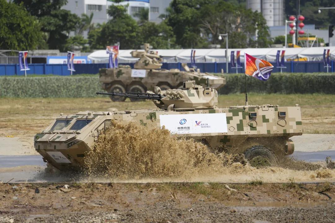 地面裝備動(dòng)態(tài)表演環(huán)節(jié),場地進(jìn)一步增大,由兵器工業(yè)集團(tuán)自主研發(fā)制造的主戰(zhàn)坦克、輪式裝甲車、履帶式步兵戰(zhàn)車、防雷車、輪式防護(hù)型步兵輸送車、運(yùn)輸車等將現(xiàn)場表演爬縱坡、過壕溝、涉水池、蛇形機(jī)動(dòng)等項(xiàng)目,展示高度的機(jī)動(dòng)靈活性和強(qiáng)大的越野能力,為廣大觀眾帶來耳目一新的視覺盛宴。