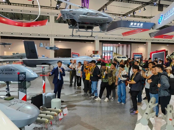 本屆航展,兵器工業(yè)集團著重展示數智賦能軍貿合成旅作戰(zhàn)體系?!疤金^”現場,新聞發(fā)言人向記者團介紹了本屆航展集團公司參展亮點、明星產品和技術發(fā)展成果,并對VT5-U輕型坦克、VU-T10無人平臺、SR5多管火箭炮、金雕CR500B無人直升機系統(tǒng)、指揮控制中心等參展裝備和技術作了重點介紹,媒體記者進一步了解了裝備的性能和特點。在無人火力展區(qū),記者團還走進仿真訓練體驗區(qū),親身“使用”單兵武器,體驗裝備性能。