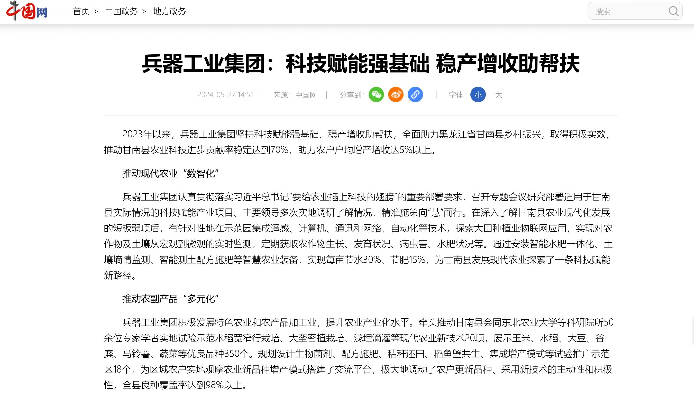 中國網(wǎng)報道兵器工業(yè)集團科技賦能 助力黑龍江省甘南縣鄉(xiāng)村振興 |
